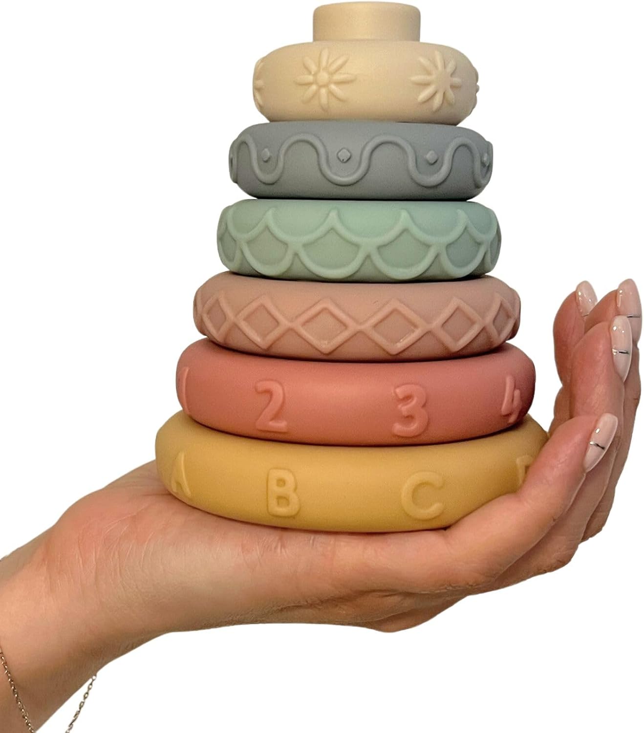 - stacking rings toy is easy for little hands to grasp and play with, promoting independence and confidence in their abilities. It’s a perfect toy for individual play or to share with friends.