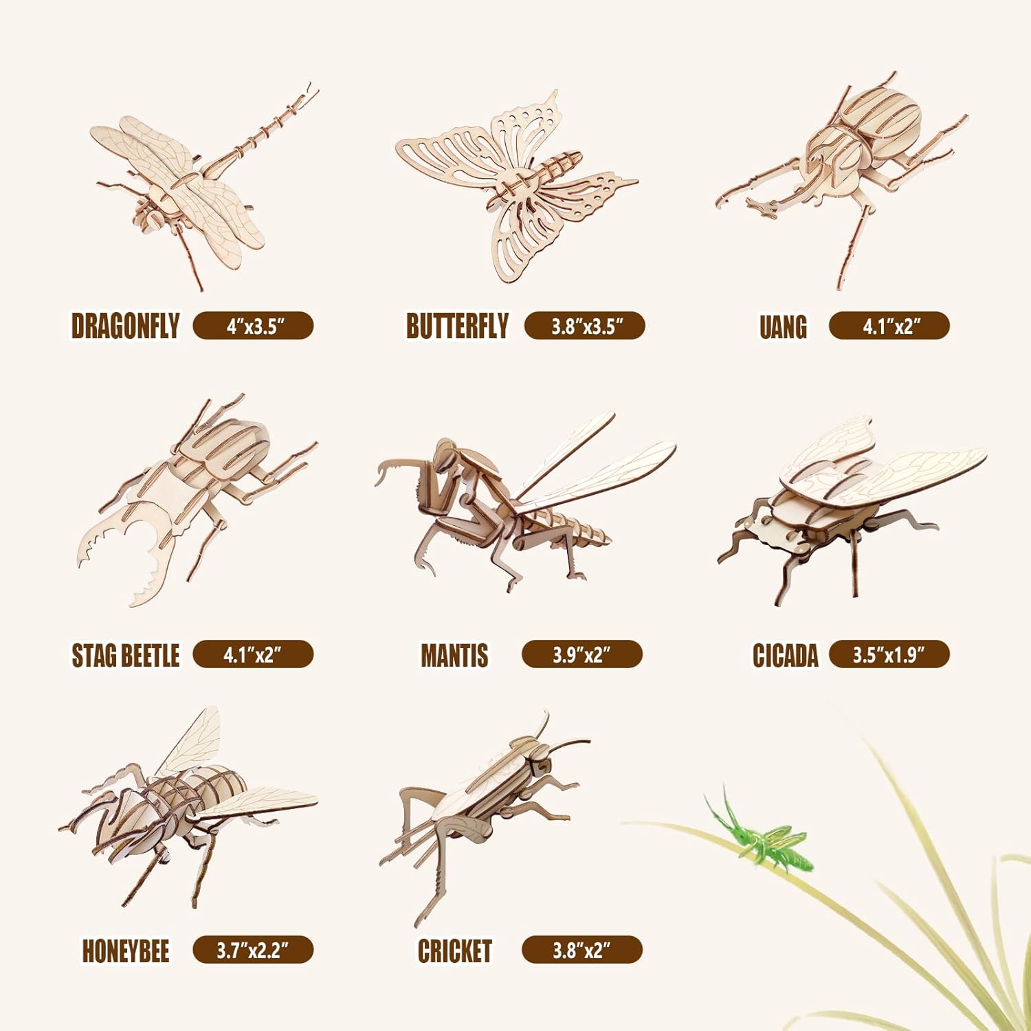 - 【8-PIECE PUZZLE SET】This puzzle set includes: cicada, unicorn, butterfly, bee, stag beetle, dragonfly, praying mantis, and cricket. Build your own insect world with no tools or glue required!